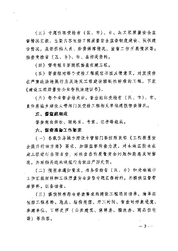 關(guān)于組織開展全國工程質(zhì)量安全提升行動督查的通知