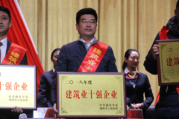2月11日下午,海安市2018年度總結(jié)表彰大會在市文化藝術(shù)中心舉行,對2018年度取得顯著成績的757個先進單位和538名先進個人給與表彰。我公司在表彰大會上一舉囊括七項殊榮: