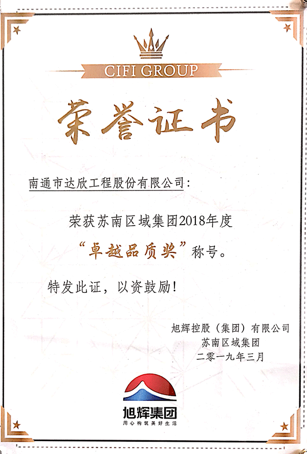 榮譽不僅是對雙方過往合作的肯定,更是對未來合作的無限期待!2019年,達欣集團將在旭輝控股(集團)蘇南區(qū)域集團事業(yè)的平臺上,不斷提升自我,從每一處細節(jié)、每一個流程環(huán)節(jié)入手,把控全程,為旭輝集團筑造一批市場影響力強、社會認可度高、百姓滿意度大的特色家園、品牌項目、放心工程!
