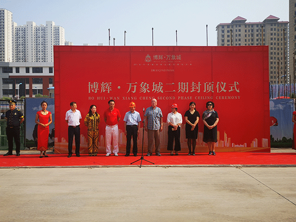 在封頂儀式上,南通達欣工程股份有限公司副總經(jīng)理徐仁忠同志,首先感謝博裕房地產(chǎn)開發(fā)有限公司領(lǐng)導(dǎo)的高度重視和大力協(xié)調(diào),向關(guān)心和支持博輝萬象城二期工程的秦皇島市住建局、市質(zhì)監(jiān)站、市安監(jiān)站等相關(guān)監(jiān)管部門的領(lǐng)導(dǎo)表示感謝,向參加日夜奮戰(zhàn)在項目建設(shè)工地的全體建設(shè)者致以崇高的敬意和誠摯的問候。他在致詞中指出:在接下來的工程建設(shè)任務(wù)中,將繼續(xù)保持主體工程建設(shè)的激情,秉承公司 “誠實守信、服務(wù)顧客”的經(jīng)營理念,發(fā)揚“凝心聚力、勇于爭先”的企業(yè)精神,把主體結(jié)構(gòu)封頂當做新的起點,繼續(xù)發(fā)揚達欣公司“建筑鐵軍”的優(yōu)良傳統(tǒng),做好下階段裝修工程,創(chuàng)建精品工程,讓領(lǐng)導(dǎo)放心,讓業(yè)主滿意,為秦皇島市建設(shè)交一份滿意的答卷!