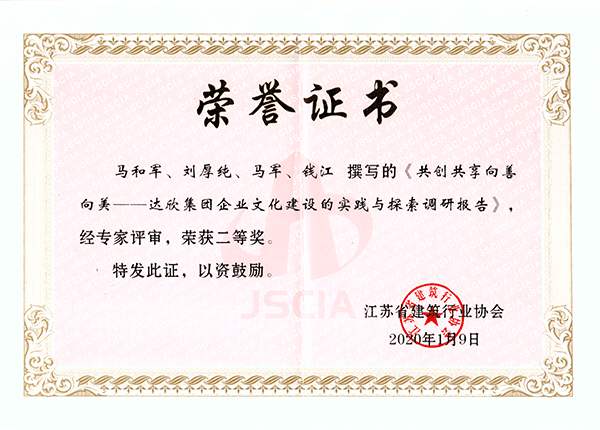 在企業(yè)文化理念和制度引導(dǎo)下,全體達(dá)欣人將積極弘揚(yáng)企業(yè)文化傳承,將達(dá)欣優(yōu)秀企業(yè)文化建造在一項(xiàng)項(xiàng)精品工程中,在全國各地施工項(xiàng)目中繼續(xù)展示良好的企業(yè)形象,唱響“達(dá)欣”品牌,助推企業(yè)高質(zhì)量發(fā)展。