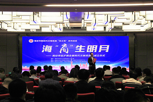 10月29日,海安市駐滬新時代文明實(shí)踐站成立儀式在上海舉行。江蘇省住建廳駐上海辦事處主任、江蘇省人民政府駐上海辦事處建管處處長趙永強(qiáng),南通市文明辦副主任吳信林;海安市委副書記、黨校校長張浩,海安市委常委、宣傳部長王榮貴,海安市人民政府副市長戴曉晨,以及上海海安商會全體會員,海安駐滬流動黨員聯(lián)合黨委全體班子成員,海安駐滬建筑企業(yè)負(fù)責(zé)人,各區(qū)鎮(zhèn)街道政工書記、宣傳委員、駐滬招商人員等200多人出席活動現(xiàn)場。
