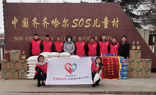 11月19日,達欣集團·魯班傳人志愿者服務第七分隊在第七工程公司總經(jīng)理陳貴榮的帶領下來到齊齊哈爾市SOS兒童村,給村里的孩子們送來了2000斤面粉,1000斤豆油,100提衛(wèi)生紙等生活物資,以表達對孩子們的關愛和關心。