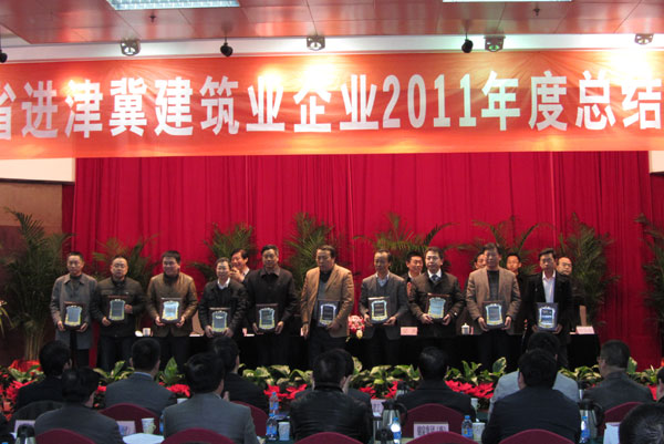 會議對2011年度江蘇省進津、進冀建筑施工企業(yè)優(yōu)秀項目部、優(yōu)秀建造師和先進工作者進行了表彰和頒獎,第四工程公司安居?xùn)|城B標(biāo)段項目部、第六工程公司唐山鳳城國際廣場項目部被授予“2011年度江蘇省進津冀建筑業(yè)企業(yè)優(yōu)秀項目部”,第四、第六工程公司的張維琪、傅海榮、朱玉平、陳仁富4位同志被授予“2011年度江蘇省進津冀建筑業(yè)企業(yè)優(yōu)秀建造師”,楊靜、江慶華等12名同志被授予“先進工作者”。