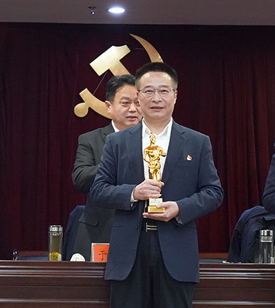 會(huì)上,集團(tuán)黨委書記劉厚純上臺(tái)接受表彰,領(lǐng)取了黨建“魯班獎(jiǎng)”小金人獎(jiǎng)杯。