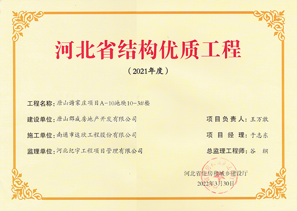 近日,從河北省住房和城鄉(xiāng)建設(shè)廳傳來喜訊,集團邊各寨棚戶區(qū)改造項目、唐山謝家莊項目、邯鄲市雞澤縣多館合一等五項目榮獲河北省結(jié)構(gòu)優(yōu)質(zhì)工程。