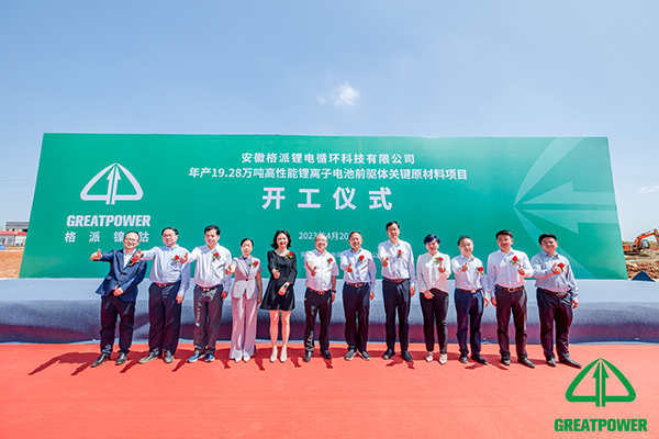 許華為書記宣布安徽格派鋰電循環(huán)科技有限公司高性能鋰離子電池前軀體關(guān)鍵原材料項(xiàng)目正式開工。
