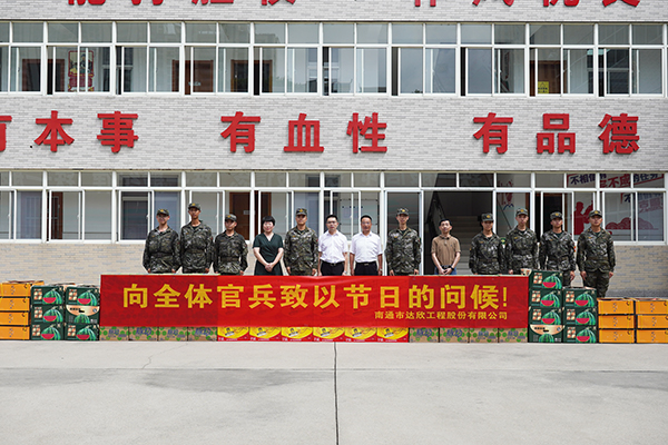 為慶祝中國(guó)人民解放軍建軍96周年,大力弘揚(yáng)愛(ài)軍擁軍的光榮傳統(tǒng),推動(dòng)軍民融合發(fā)展,7月31日,達(dá)欣集團(tuán)黨委、工會(huì)聯(lián)合海安市人武部組織魯班傳人志愿服務(wù)隊(duì)成員來(lái)到武警南通支隊(duì)執(zhí)勤二大隊(duì)海安中隊(duì)開(kāi)展“愛(ài)國(guó)擁軍‘欣’向黨,共敘軍民魚(yú)水情”擁軍慰問(wèn)活動(dòng),集團(tuán)在海領(lǐng)導(dǎo)劉厚純、楊靜參加活動(dòng)。