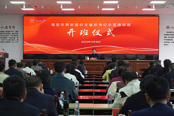 11月16日,全市兩新組織黨組織書記示范培訓(xùn)班開班儀式在達欣集團舉行,海安市委組織部常務(wù)副部長、“兩新”工委書記、黨建辦主任吳蘭,各區(qū)鎮(zhèn)街道組織委員、培訓(xùn)班全體學員、高新區(qū)兩新組織黨組織書記代表等100多人出席活動。集團在海領(lǐng)導(dǎo)馬和軍、杭小建、劉厚純參加活動。