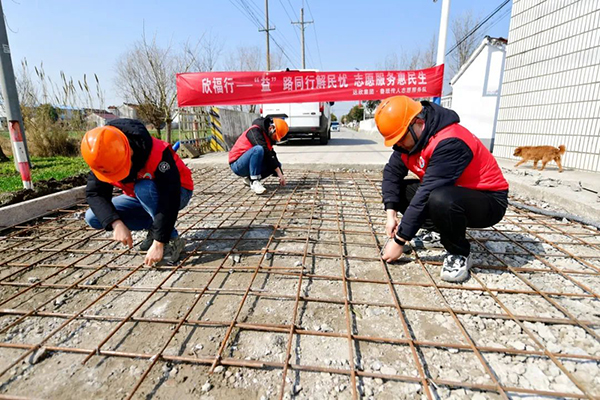 集團(tuán)副董事長、總經(jīng)理王邦國作為海安市政協(xié)委員,在調(diào)研基層社情民意時(shí)了解到,胡集村中橫河南路有近200多平米路面長期被侵蝕,路面凹凸不平,給附近居民出行帶來困擾。隨即,他通過街道村居“有事好商量”協(xié)商議事平臺,與村兩委以及居民代表進(jìn)行溝通,確定了對坑洼路面進(jìn)行修繕翻新的相關(guān)事宜。同時(shí),在施工過程中,他以一名普通志愿者的身份參與了路面翻新,為集團(tuán)廣大黨員志愿者、青年志愿者作表率。