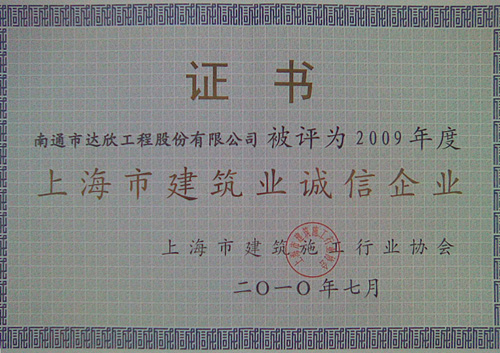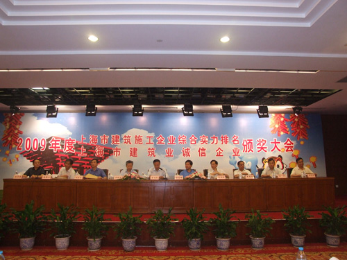 2010年7月30日,2009年度上海市建筑施工企業(yè)綜合實(shí)力及上海市建筑業(yè)誠信企業(yè)頒獎(jiǎng)大會(huì)在青松城會(huì)議中心召開。出席會(huì)議的有上海市建委、上海市建管辦、市場管理總站、施工行業(yè)協(xié)會(huì)、各省滬辦領(lǐng)導(dǎo)以及獲獎(jiǎng)企業(yè)共四百多人參加。