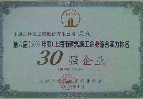 達(dá)欣股份首次挺進(jìn)進(jìn)滬施工企業(yè)前30強(qiáng)(進(jìn)滬施工的江蘇企業(yè)僅有八家),這標(biāo)志著公司跨入了進(jìn)滬強(qiáng)企的第一方陣,標(biāo)志著公司進(jìn)滬施工進(jìn)入了新階段!同時(shí)公司還再次榮獲了“上海市建筑業(yè)誠信企業(yè)”稱號(hào)。上海市的主流媒體“解放日?qǐng)?bào)”、行業(yè)報(bào)刊“建筑時(shí)報(bào)”均予以報(bào)導(dǎo)。