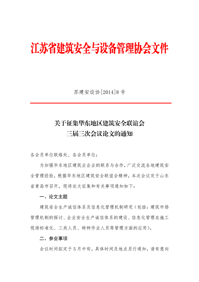 關(guān)于征集華東地區(qū)建筑安全聯(lián)誼會(huì)三屆三次會(huì)議論文的通知