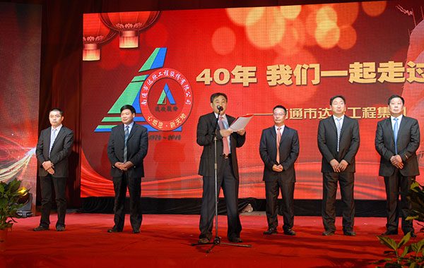 公司董事長馬和軍進行了致辭答謝。他說在這樣一個特殊的時刻和一個特殊的地點,我們正做著一件具有特別意義的事情。我們一起回顧達欣的光榮歷史,一起回味達欣40年來經歷的風風雨雨,一起品嘗我們用勤勞和智慧的雙手攢獲的豐收和喜悅。40年來,我們始終堅持改革,并最終受益于改革;40年來,我們傳承并不斷發(fā)揚光大著一種精神,這種精神的核心就是“艱苦奮斗,以身作則”、“團結拼搏,顧全大局”、“凝心聚力,勇于爭先”;40年來,在達欣這個大家庭中始終洋溢著一種濃濃的情誼。站在達欣40年這個歷史新起點上,相信達欣的光輝旗幟,一定會更好地迎風展揚、高高展揚、百年展揚;在熱烈的掌聲中,縣委書記陸衛(wèi)東發(fā)表重要講話,他指出,今天我們共同見證和分享達欣集團四十年發(fā)展的成功和喜悅,作為縣內的標桿建筑企業(yè),達欣步入了公司歷史以來發(fā)展最快、榮譽最高、分配最多、貢獻最大的時期,他希望公司要進一步深化改革,加快發(fā)展,高起點定位,突出重點,好中求快,實現(xiàn)達欣集團的新飛躍。