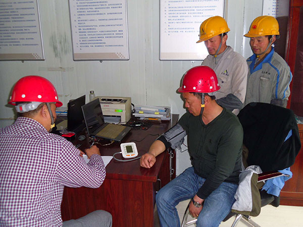 加強(qiáng)宣傳,項(xiàng)目部堅(jiān)持每日對(duì)職工進(jìn)行班組教育和日常班前教育,讓職工每日班前都能明確當(dāng)日的工作任務(wù)、操作規(guī)程和工作環(huán)境,提高個(gè)人的安全防范意識(shí),確保安全生產(chǎn);在每棟樓懸掛“安全生產(chǎn)月”活動(dòng)的宣傳標(biāo)語(yǔ)。加強(qiáng)警示,在工地大門(mén)口設(shè)置了重大危險(xiǎn)源公示牌,在每棟樓的入口處公示當(dāng)日本樓棟號(hào)的危險(xiǎn)源,時(shí)刻提醒職工注意作業(yè)期間身邊的危險(xiǎn)源。加強(qiáng)檢查,認(rèn)真組織對(duì)臨邊、洞口防護(hù)、漏電保護(hù)裝置進(jìn)行重點(diǎn)檢查,及時(shí)消除安全隱患。同時(shí)對(duì)各項(xiàng)目部40歲以上的員工進(jìn)行一次拉網(wǎng)式血壓檢查。對(duì)于高血壓的特殊工種,要求其休息調(diào)養(yǎng),待血壓正常后方可繼續(xù)上崗。