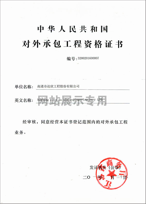 1月28日,公司獲得江蘇省商務(wù)廳頒發(fā)的“對外承包工程資格證書”,由此為走出國門承接工程、派遣勞務(wù)獲得了市場準(zhǔn)入許可,同時也為公司積極拓展更大的發(fā)展空間奠定了基礎(chǔ)。這是公司積極策應(yīng)“一帶一路”國家戰(zhàn)略的市場選擇,也是公司面對新常態(tài)形勢下,我國固定資產(chǎn)投資下滑,國內(nèi)需求增長放緩,建筑業(yè)僧多粥少的產(chǎn)能過剩問題越顯突出的發(fā)展抉擇。