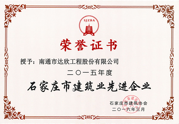 第四工程公司獲得石市建筑業(yè)先進企業(yè)